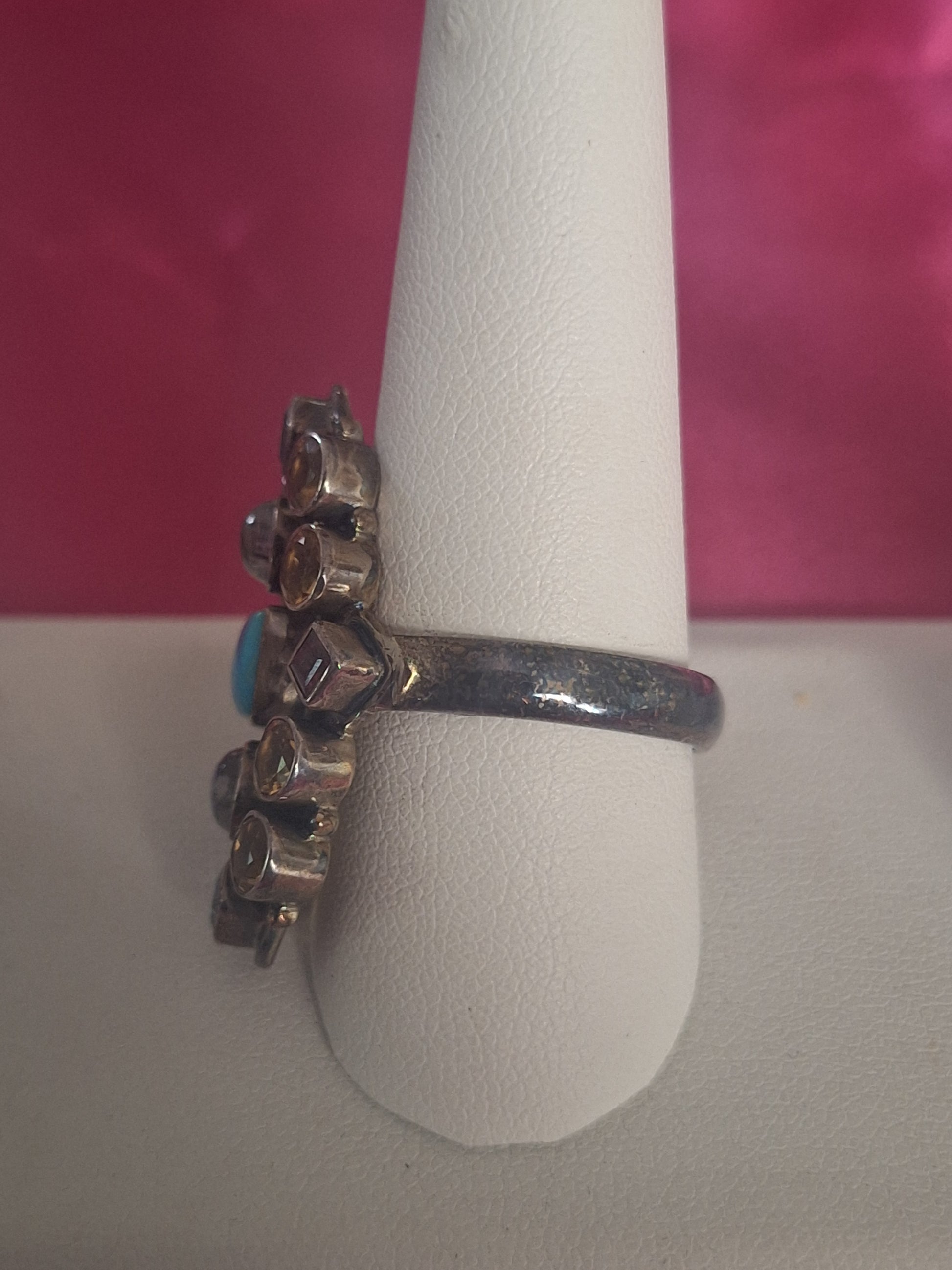 925 Sterling Citrine, Garnet, Topaz, Moonstone & Turquoise Ring