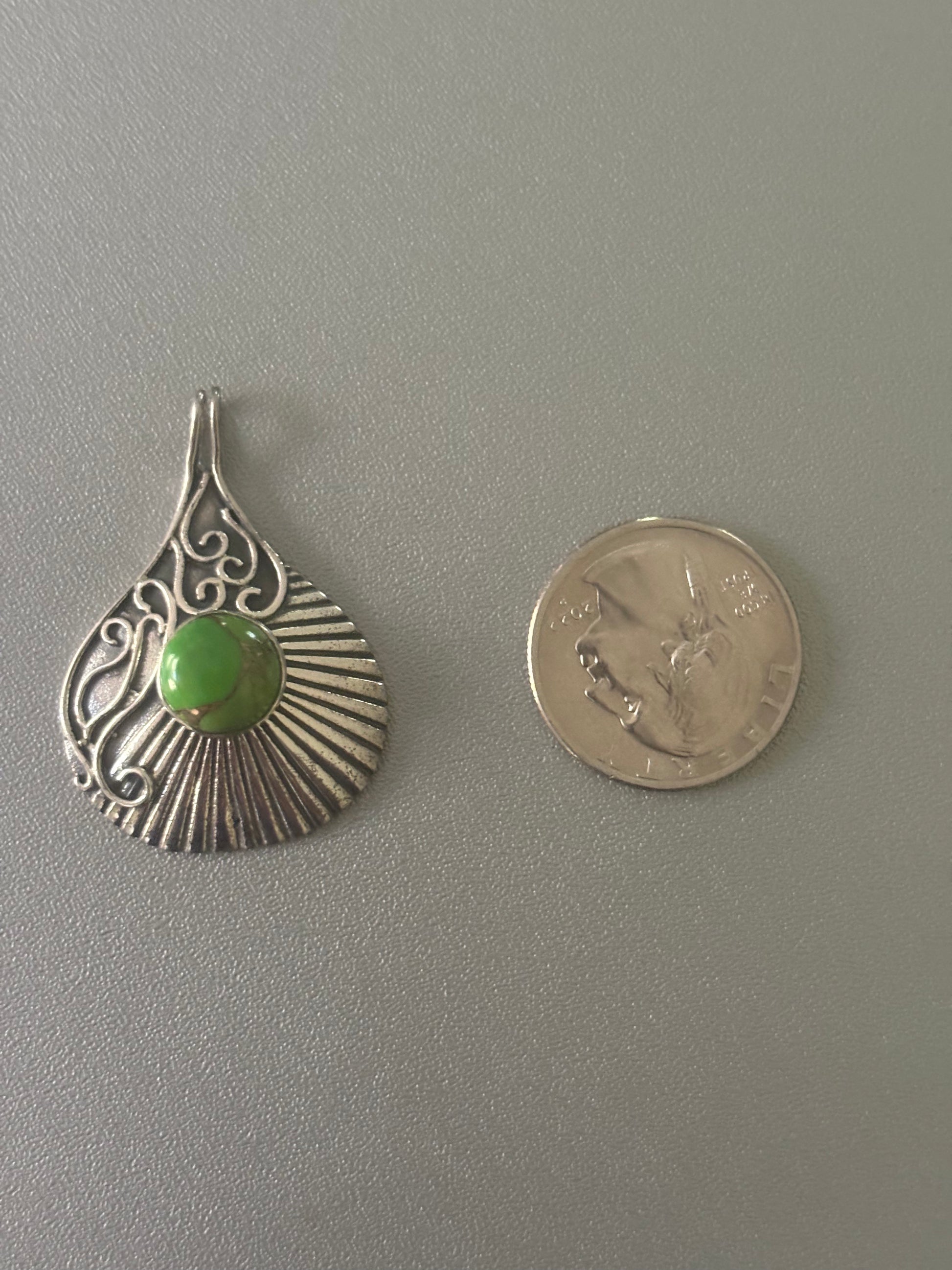 GREEN TURQUOISE ROUND CABOCHON ST/SILVER PENDANT