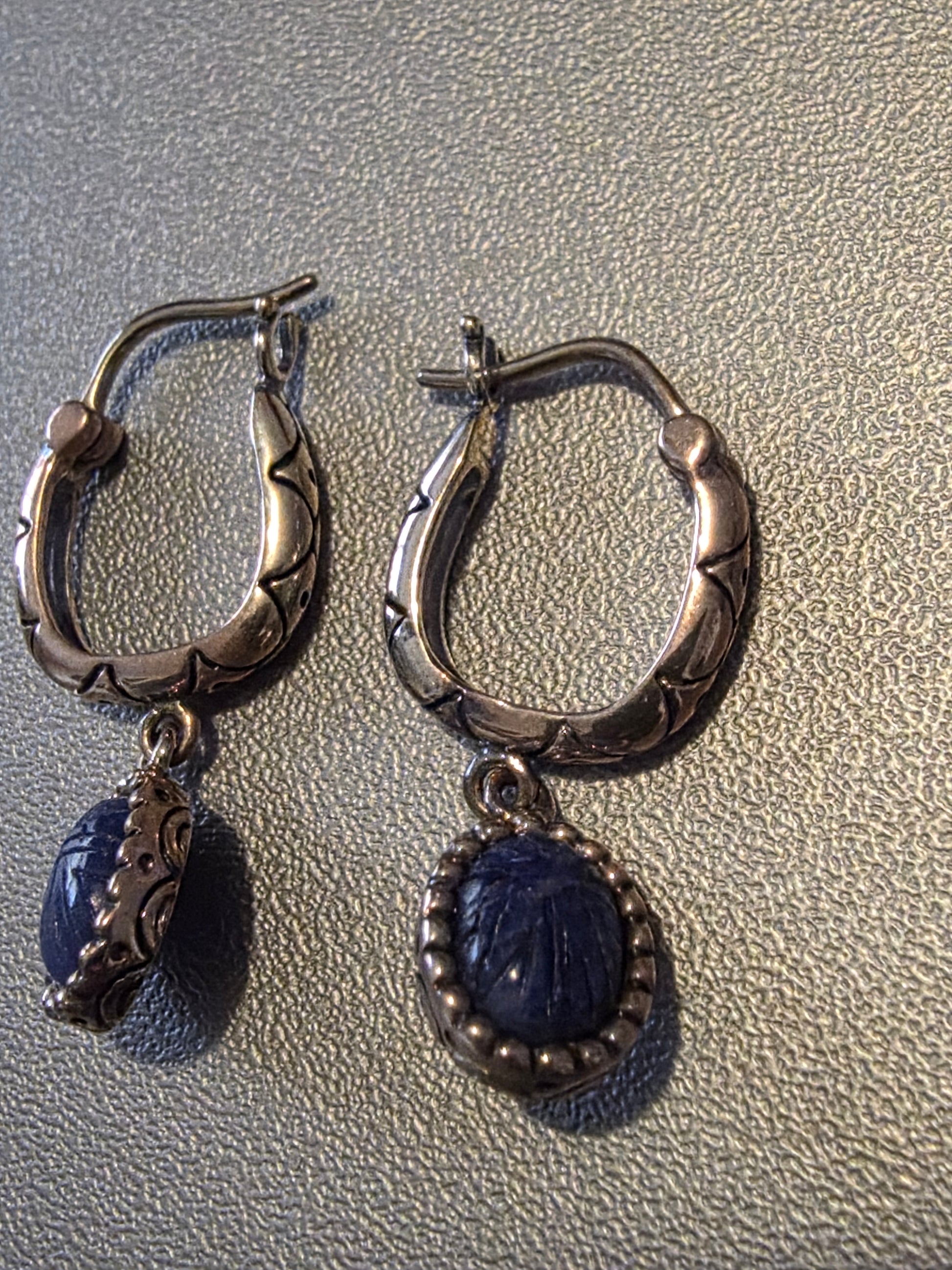 Handmade Oval Hook Earrings with Lapis Lazuli stone in Vintage 925 Sterling Silver.