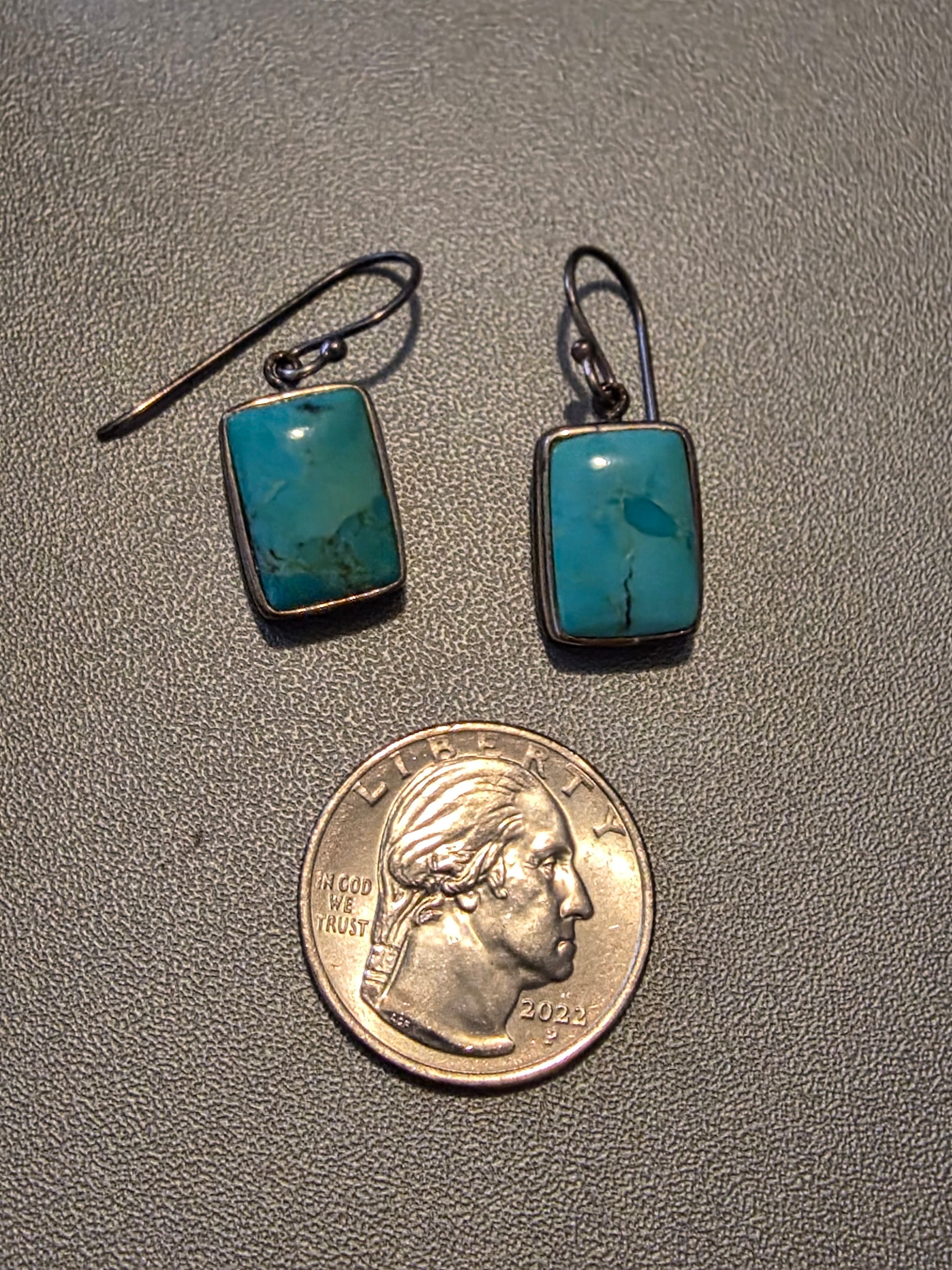 Small vintage Turquoise Rectangle Cabochon 925 Sterling Silver Dangle Earrings