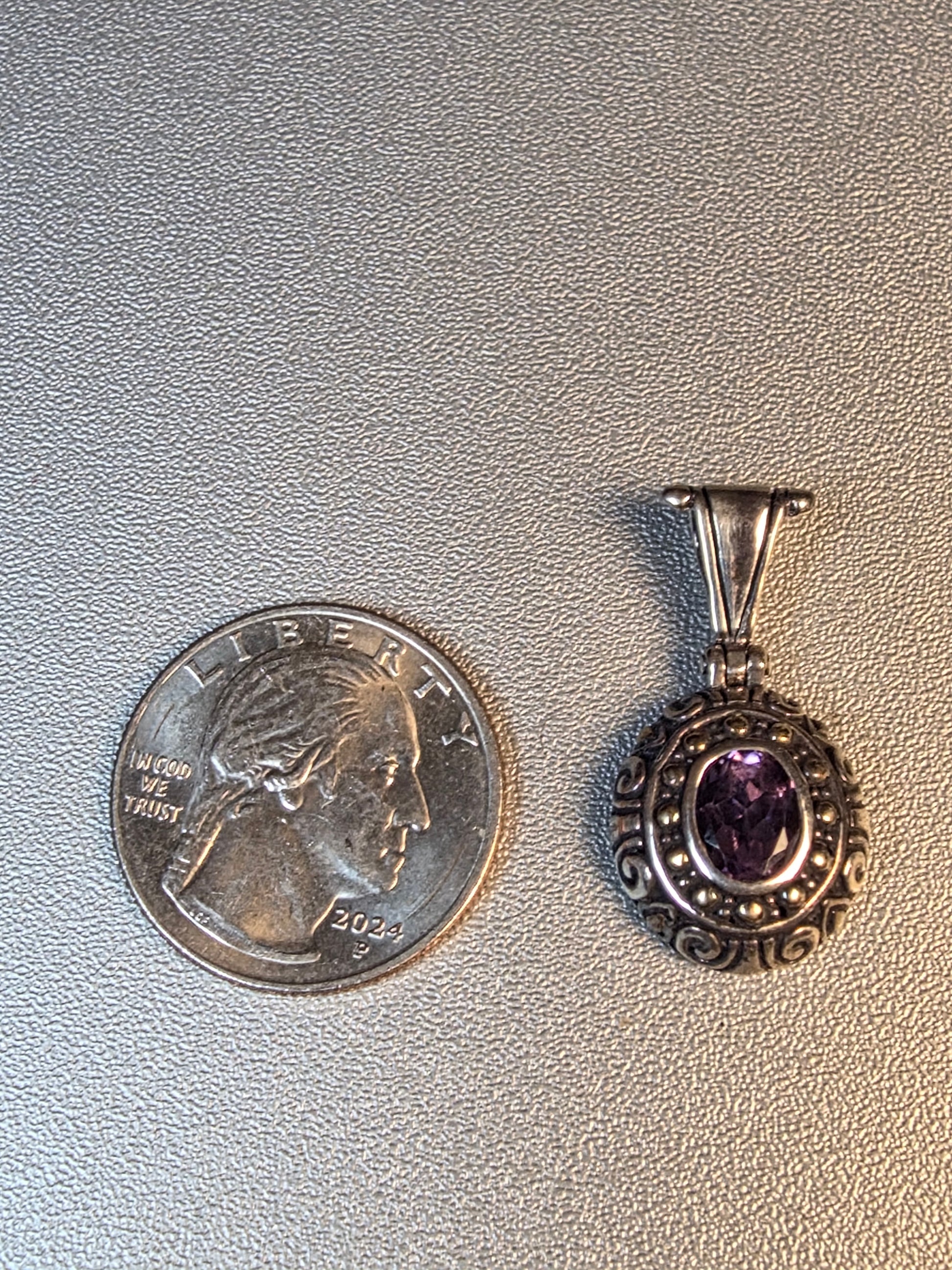 Sterling Amethyst Pendant Stamped SGF, Great Quality With Intricate Silverwork
