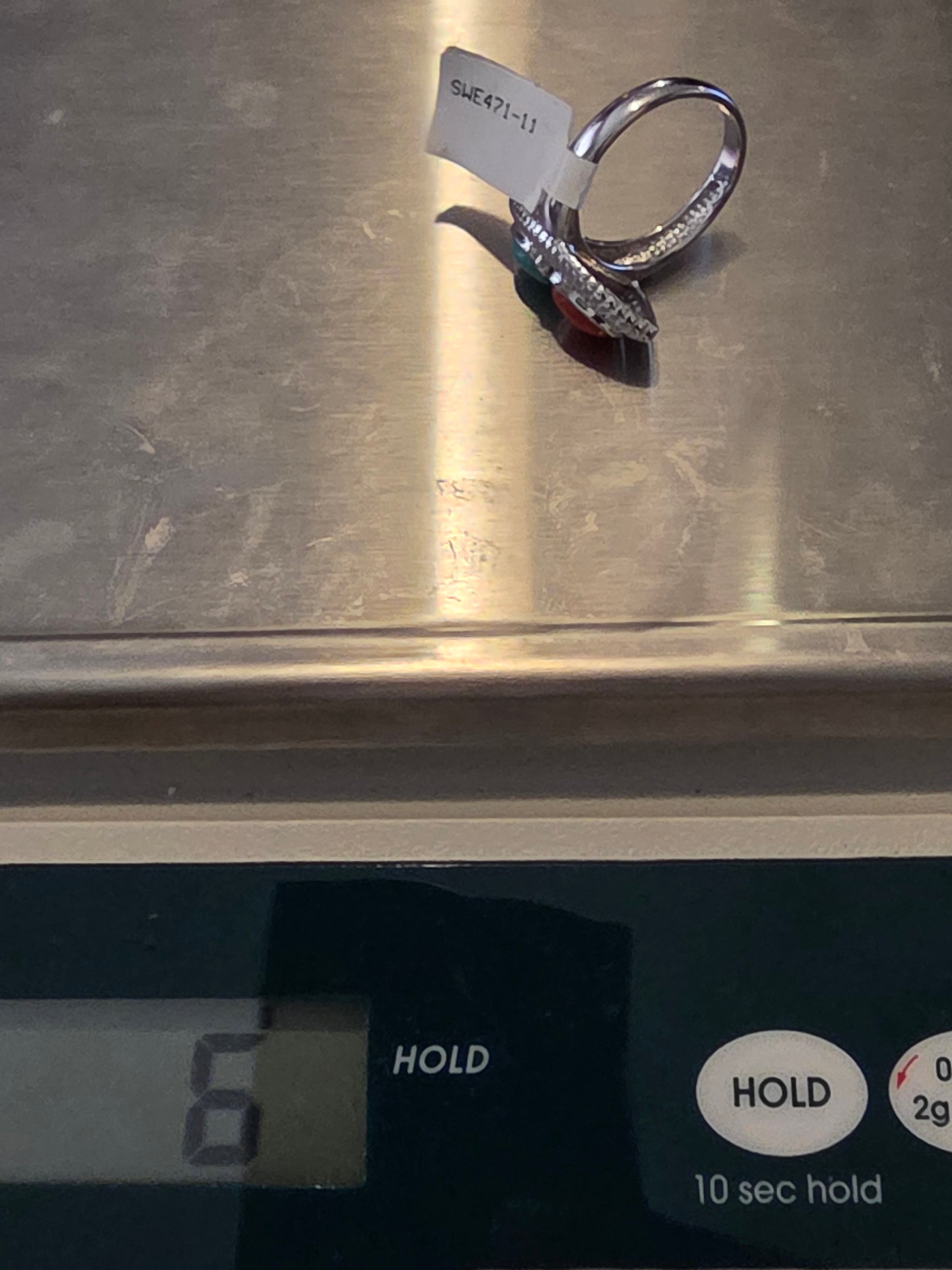 Vintage Sterling Silver Turquoise and Coral Southwest Silverwork Ring Size 12.5