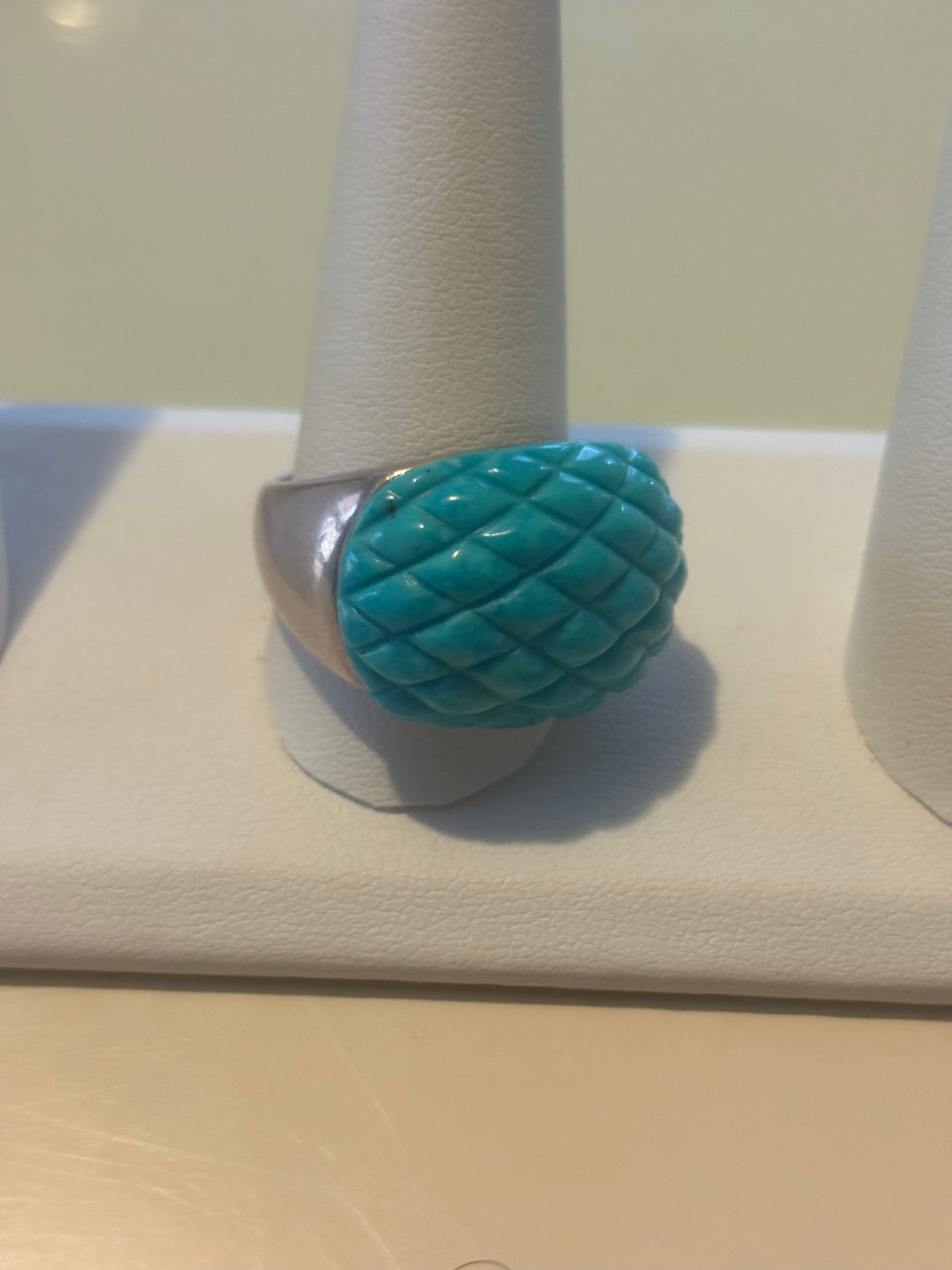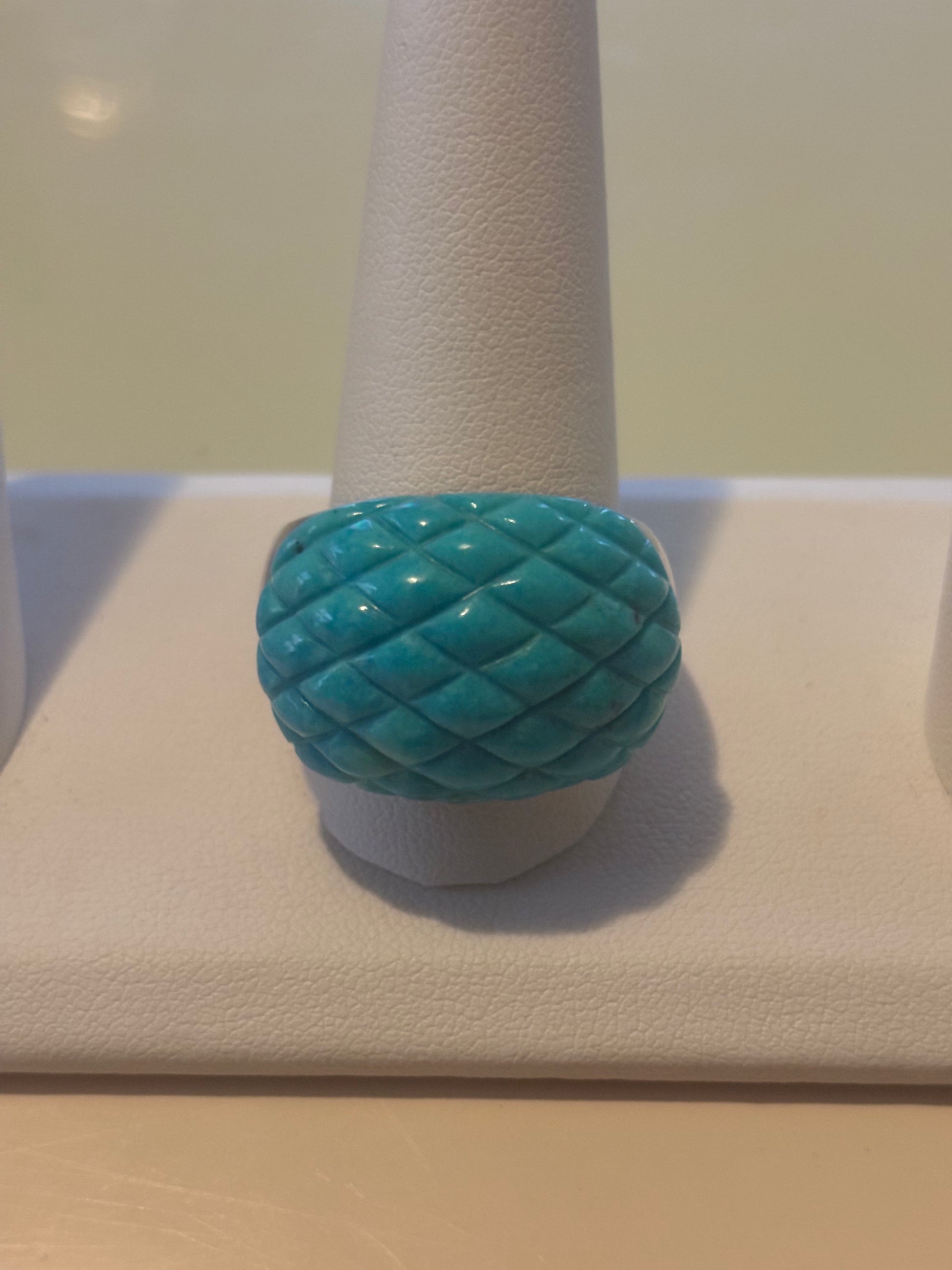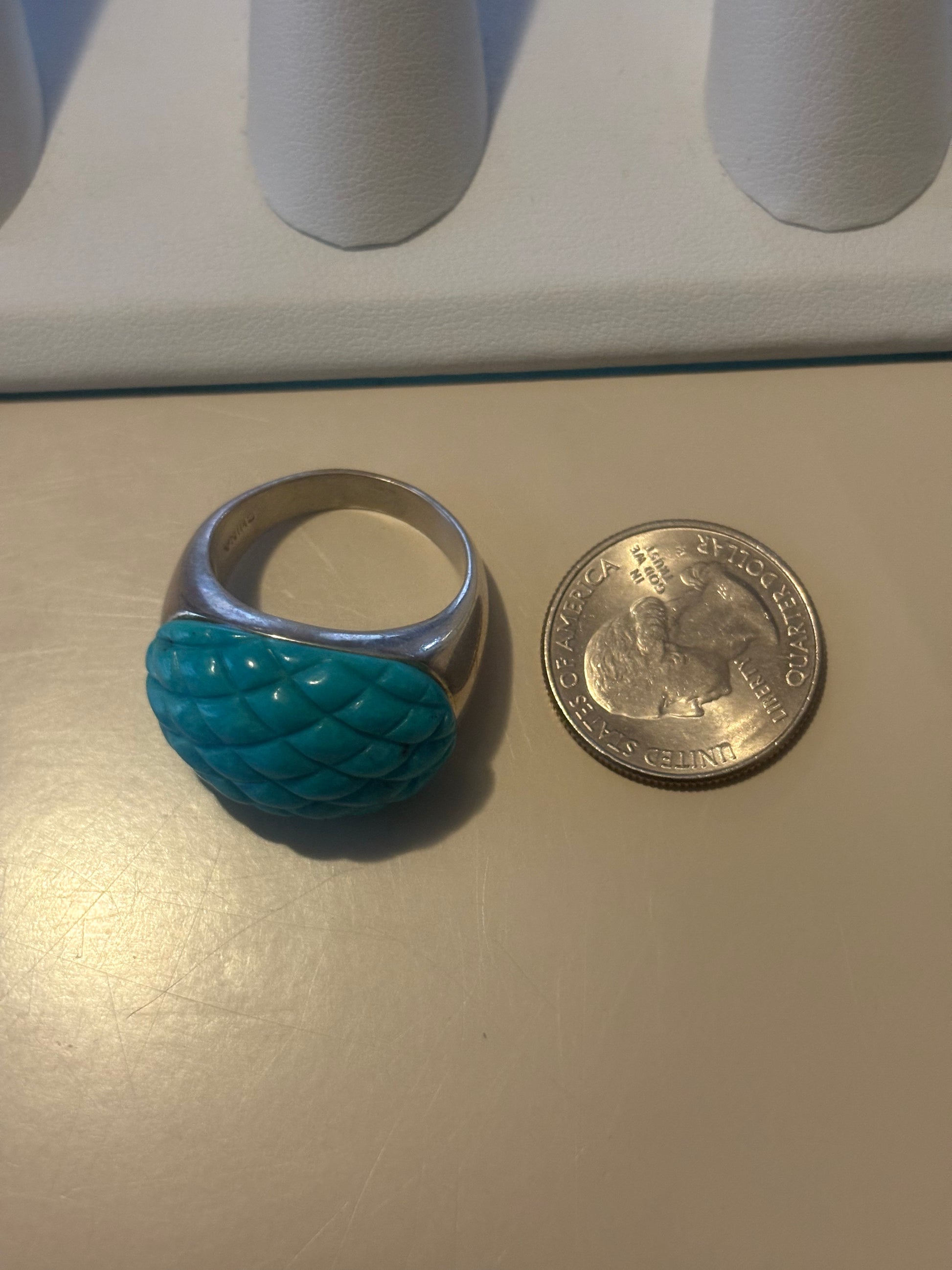 Jay King DTR Turquoise Sterling Silver Oval Checkered Cut Size 13