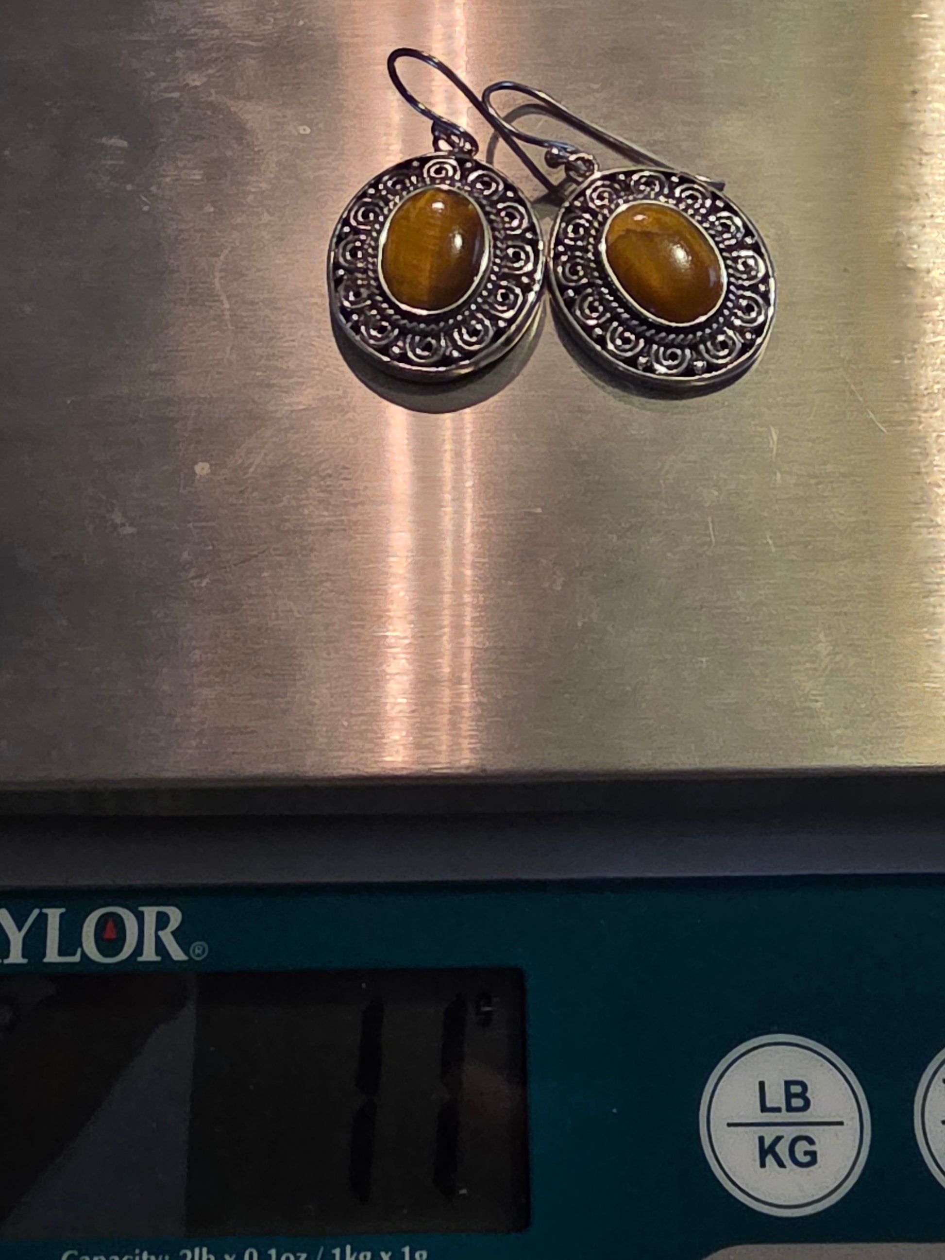 Vintage 925 Tiger Eye Pendant with Earrings Set