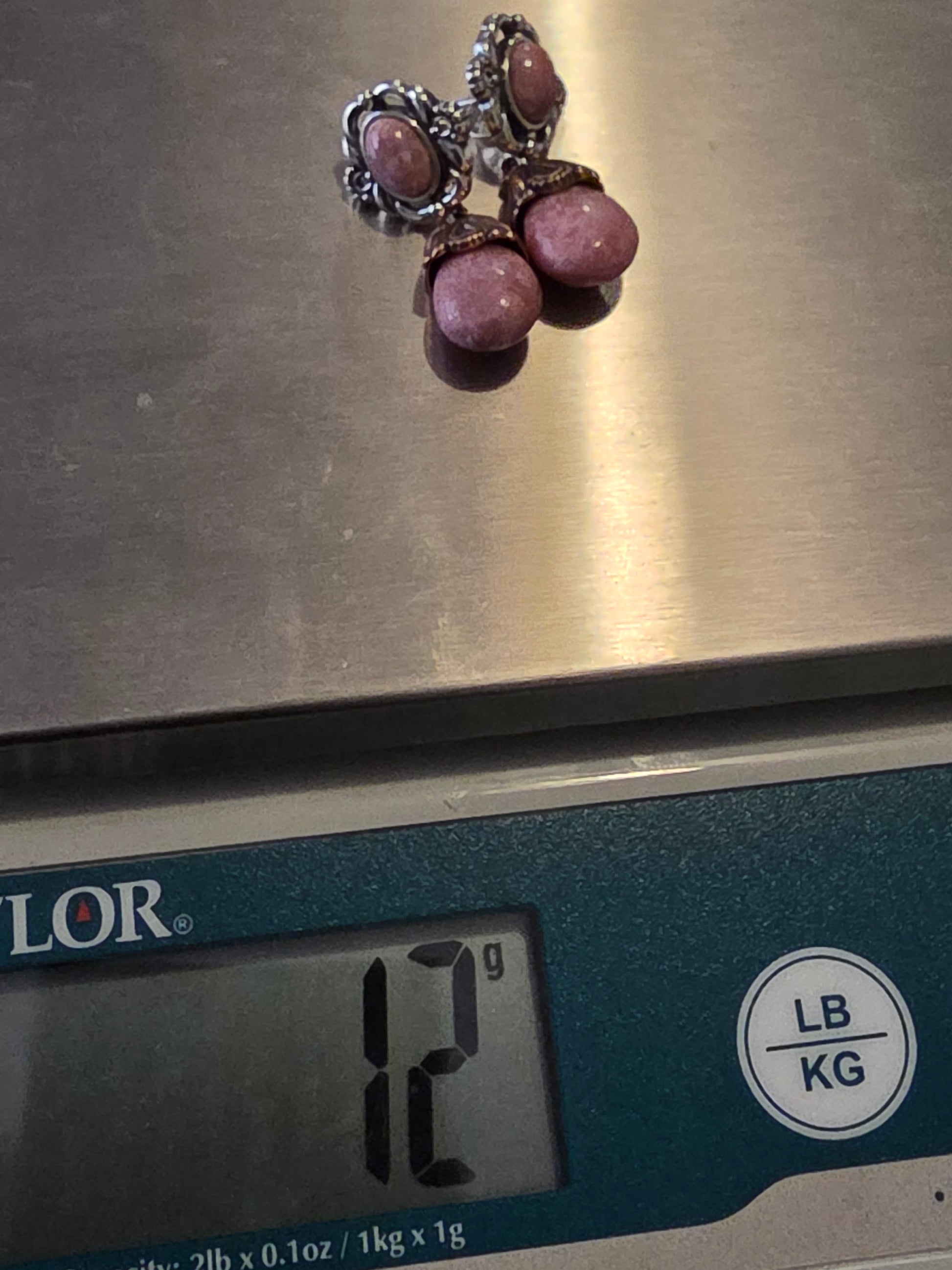 The beautiful rhodonite stones are gracefully suspended, offering a delightful movement that catches the light with every turn. The warm tones of the brass complement the sleek, polished silver, creating a captivating contrast that enhances the overall aesthetic of these earrings.
