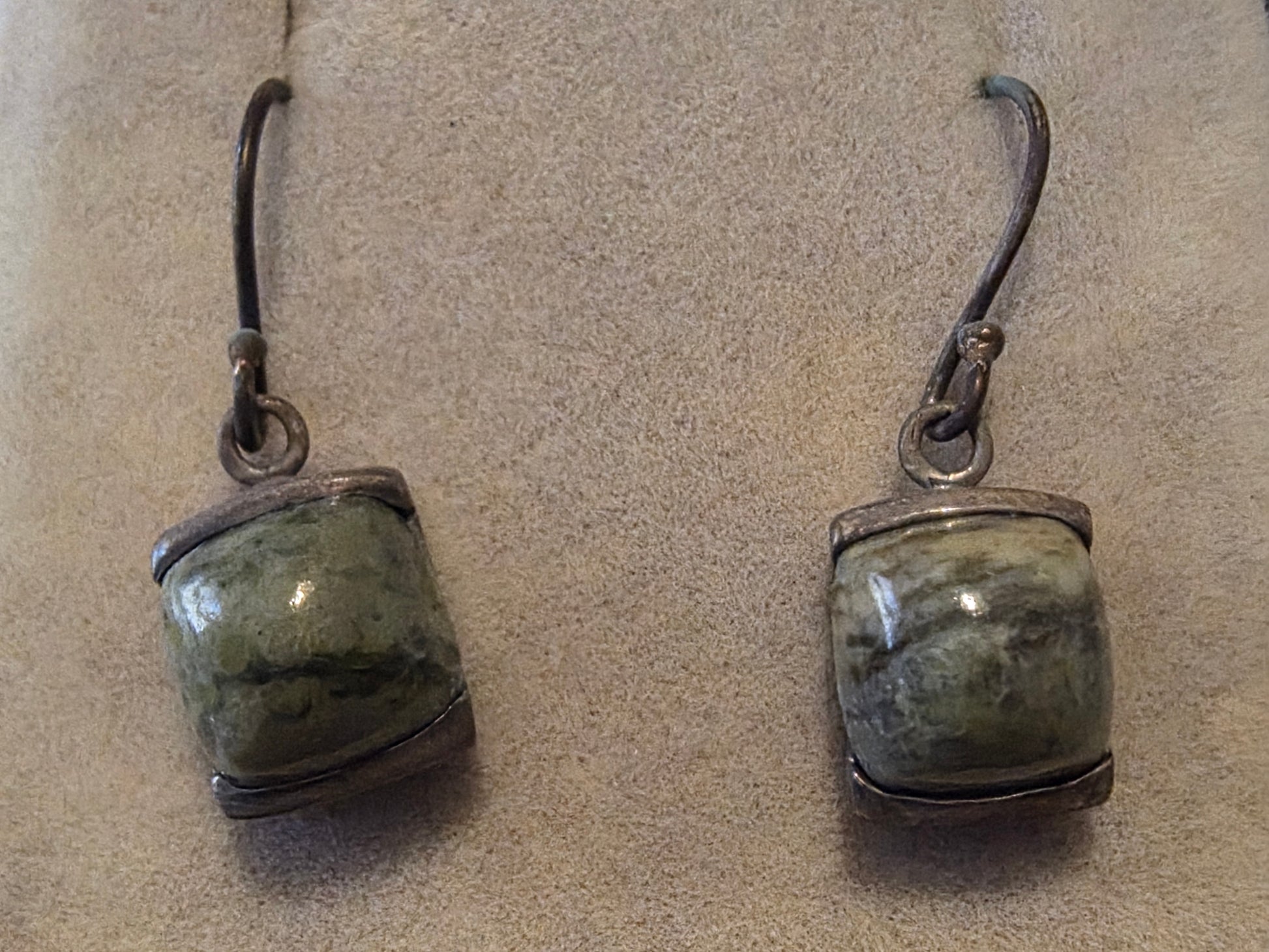 Vintage Ireland Connemara Marble Sterling Silver 925 Shamrock Dangle Earrings