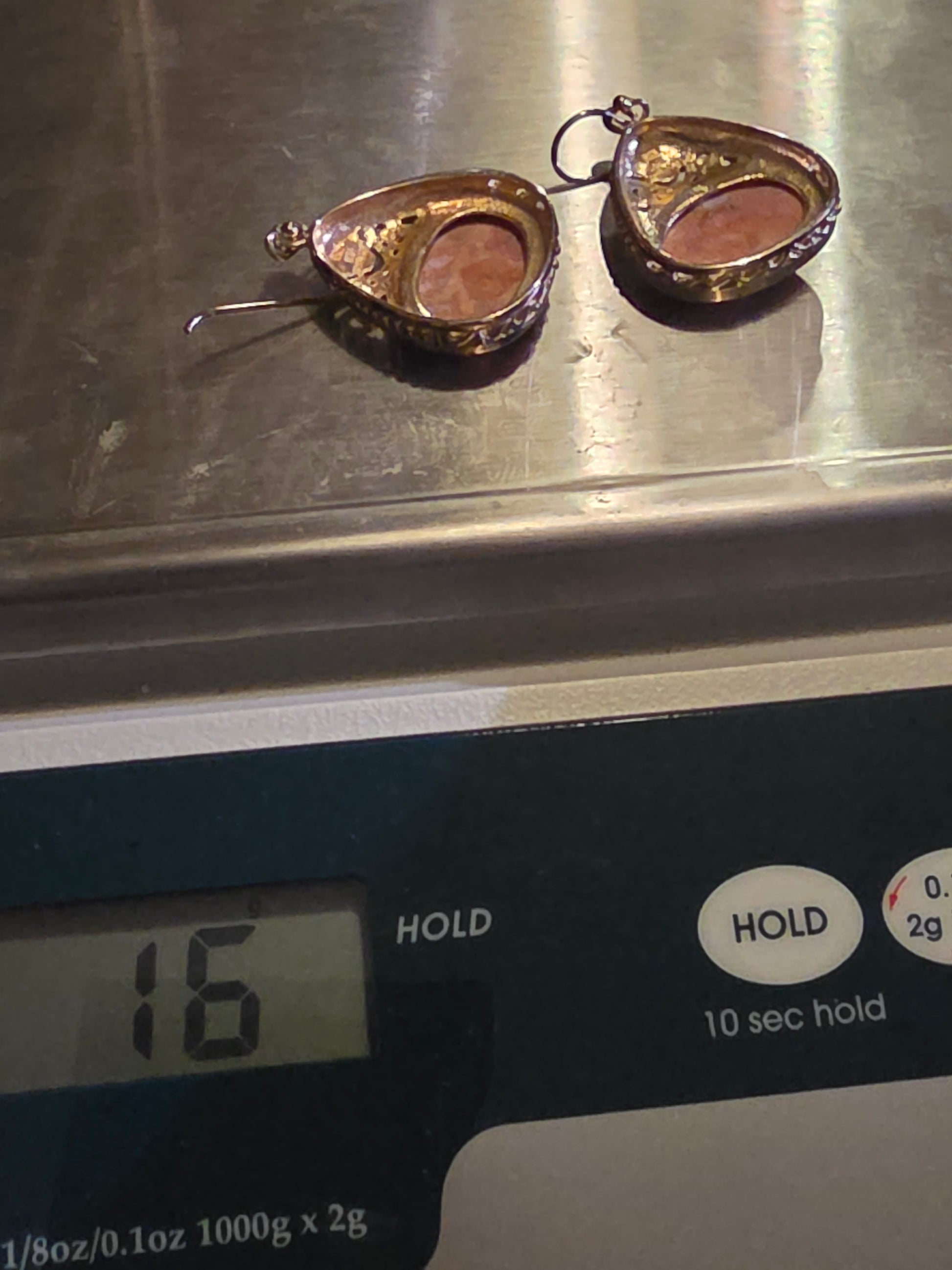Vintage Red Jasper Stone 925 Gold vermeil over sterling silver filigree drop earrings