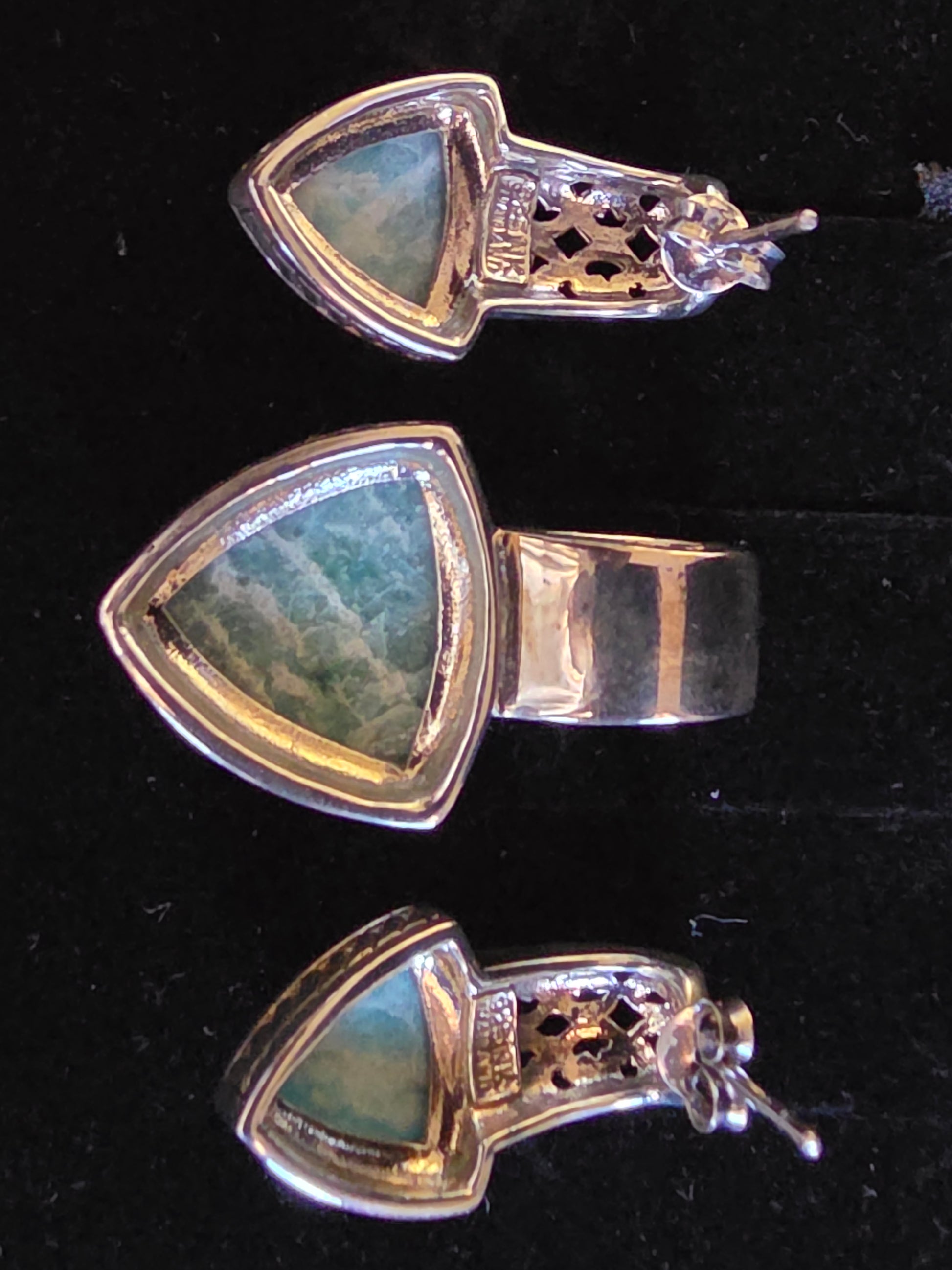 Vintage Sterling Silver Pendant and Earrings set, Cabochon Triangle Turquoise