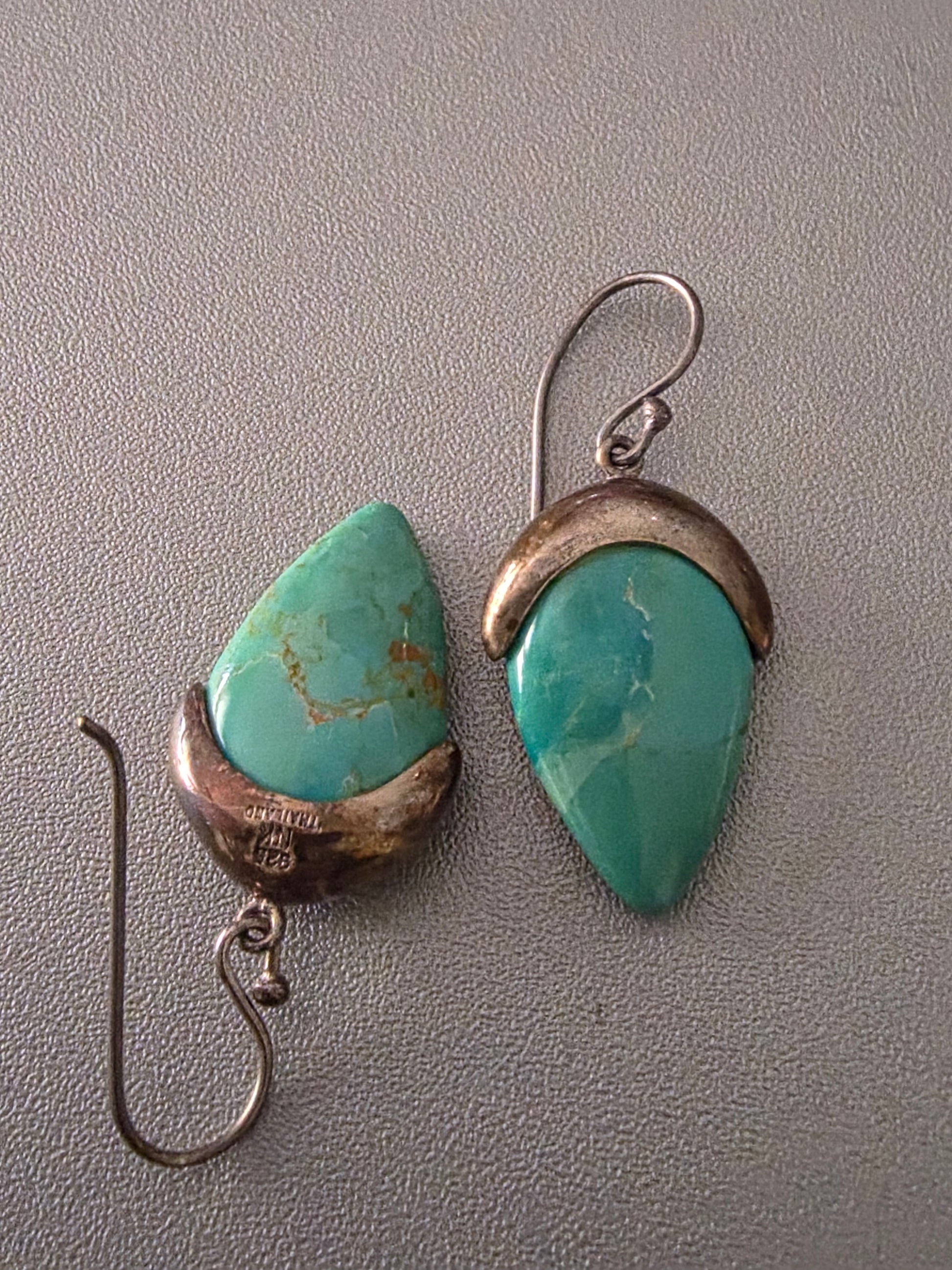 Vintage Thailand 925 Sterling Silver Turquoise Teardrop Dangle Earrings